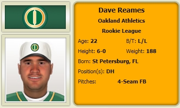 #13 Oakland Athletics: Dave Reames, Lawrence University, DH/1B